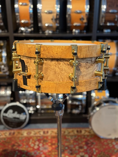 Bearing Edge 14×5.5 woodhoop snaredrum custom made by Kevin Pinson.