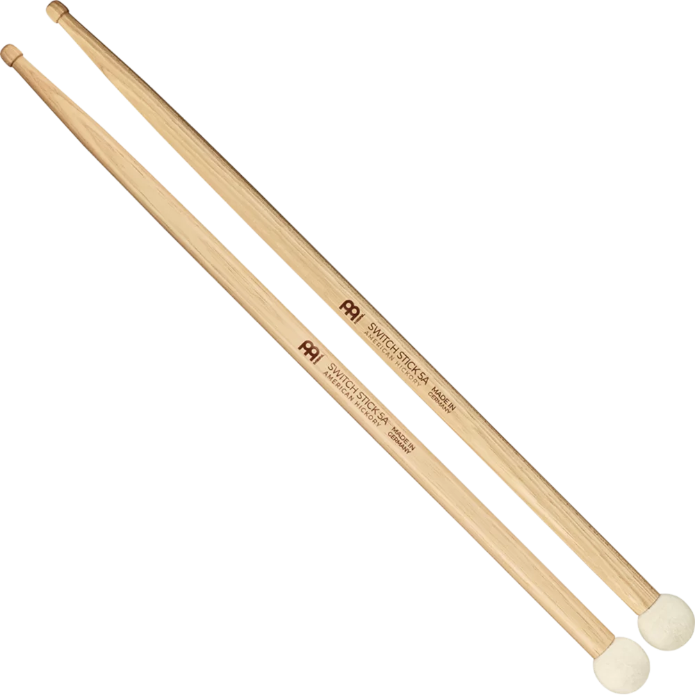 The Switch Stick 5A features our popular Hybrid 5A sticks (made from American hickory) with a hard felt mallet added to the butt end. This is a great combination for players that need to make quick changes from sticks to mallets or mallets to sticks during a performance.