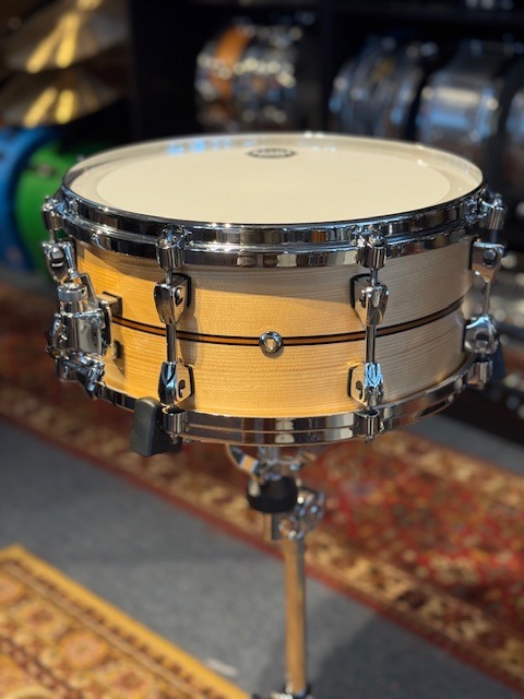 Dit specifieke model uit de Starphonic-serie is voorzien van een volledig sparrenhouten ketel. Sparrenhout, bekend als populaire toonhoutsoort voor akoestische gitaren, levert een warme en aangename klank, vooral in het midden-hooggebied. Dankzij de 8-plugs constructie en Tama’s kenmerkende Grooved Hoop ontstaat een scherpe attack met heldere, gecontroleerde projectie — een perfecte aanvulling op de zachte, warme toon van het sparrenhout. De luxe uitstraling wordt versterkt door verfijnde center stripe details.