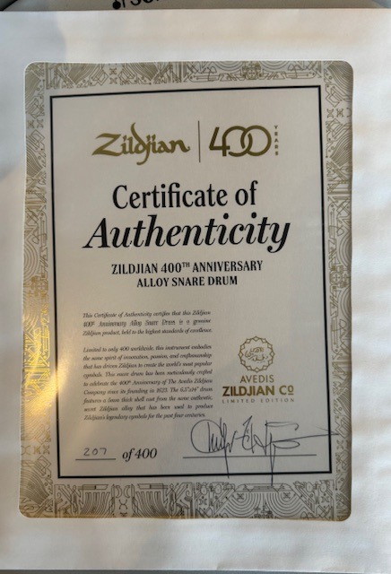 We invite you to experience the passion and craftsmanship that has gone into the creation of the Zildjian 400th Limited Edition Alloy Snare. This snare drum features a new, innovative shell casting process, using 100% pure Zildjian alloy direct from our cymbal foundry. The sound qualities of B20 Zildjian bronze inspired us to re-imagine a cast bronze snare from the ground up. While the Zildjian 400th Anniversary Alloy Snare Drum maintains the extreme volume ceiling, projection, and sonic power that cast bronze drums are known for, this drum was designed to be an expressive, deeply versatile instrument, and is equally at home behind an orchestra, in front of walls of amplifiers, in a jazz quartet, or as a platform for creative modern muffling and recording techniques.
