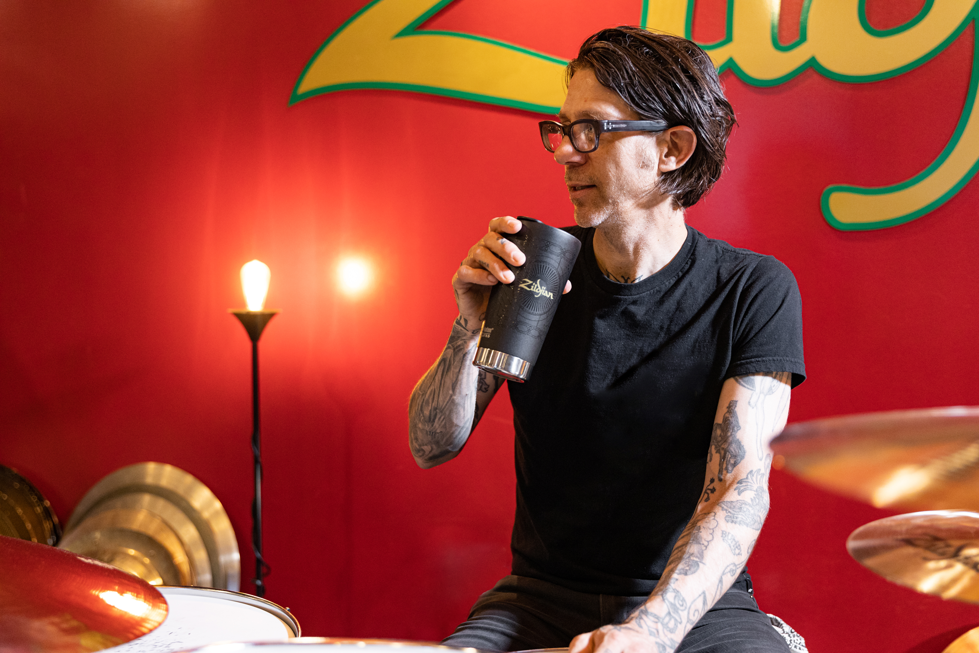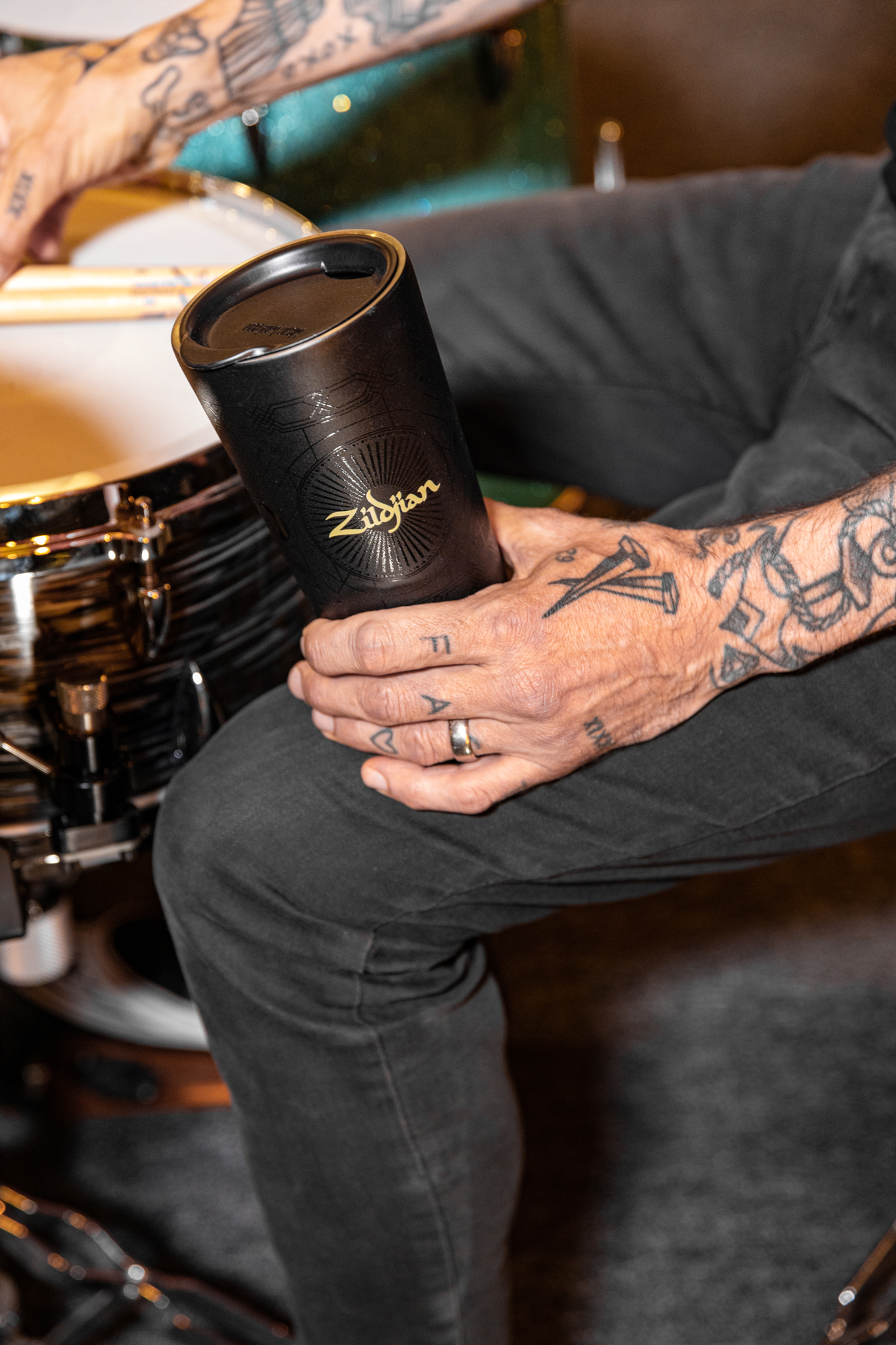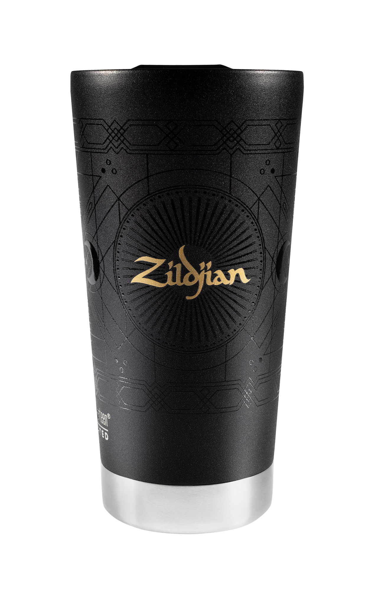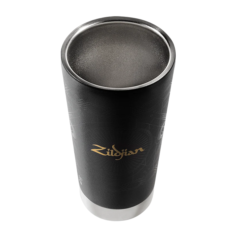 This matte black tumbler features an allover black varnish print with a gold Zildjian logo, making it a stylish and practical choice for any drummer.
